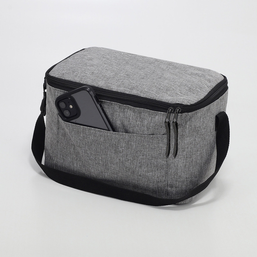 Bolsa Térmica de Nylon 9 Litros com bolso frontal e alça ajustável. Cinza