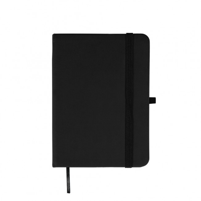 Caderneta emborrachada com elástico para lacre, marcador de página em cetim e porta caneta, contém aproximadamente 84 folhas marfim com pauta. Tamanho 17,6 x 12,8 cm